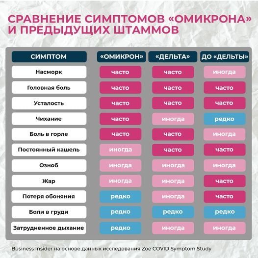 симптомы разных вариантов