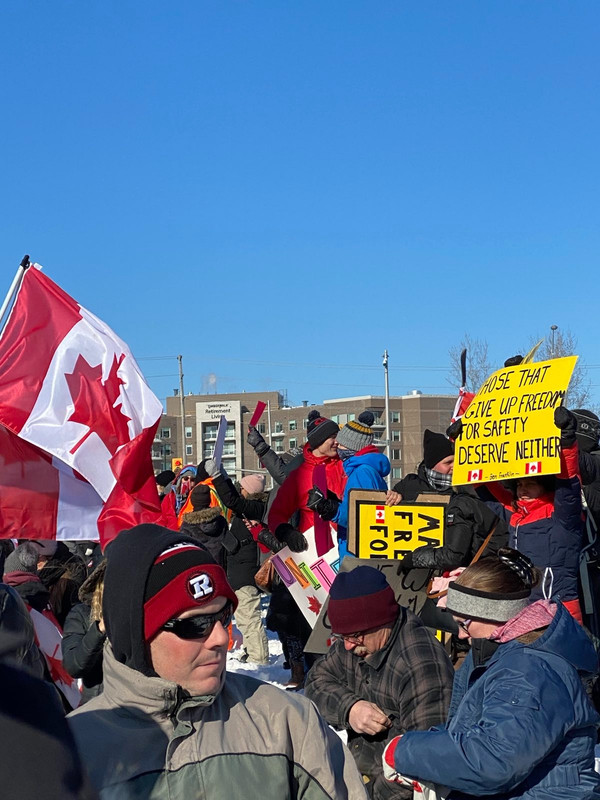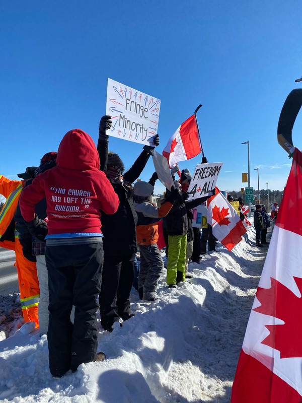 В субботу Каната встречала тракеров, на жутком холоде ждали их 3 часа (и это только один overpass, на каждом мосту происходило подобное). Это была только одна группа траков, они вьезжали в Оттаву из разных направлений, на нашей стороне конвой проезжал 2 часа, это к слову о fringe minority.