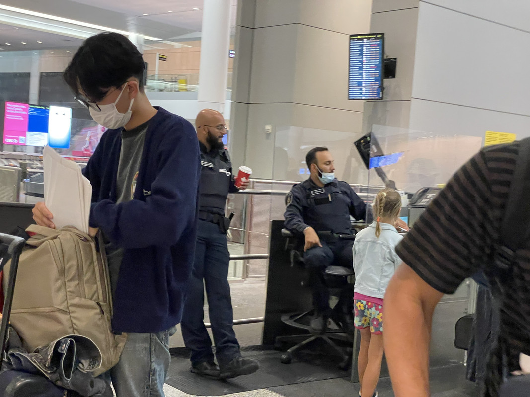 В аэропорту только на входе какие-то мальчики и девочки цепляются чтобы одевали, но не более того. В аэропорту процентов 5% людей ходит с лицами, потом ещё процентов 20% - спущены под нос. Пенты и таможенцы - аналогично (последнее фото).