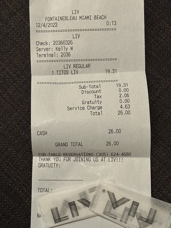 Говорю, дайте ресит - у меня бизнес ланч, вы ж не против? Хихи, нет, и так далее - короче вот этот пластиковый стаканчик льда с немного сока и водки - всего 26 долларов.